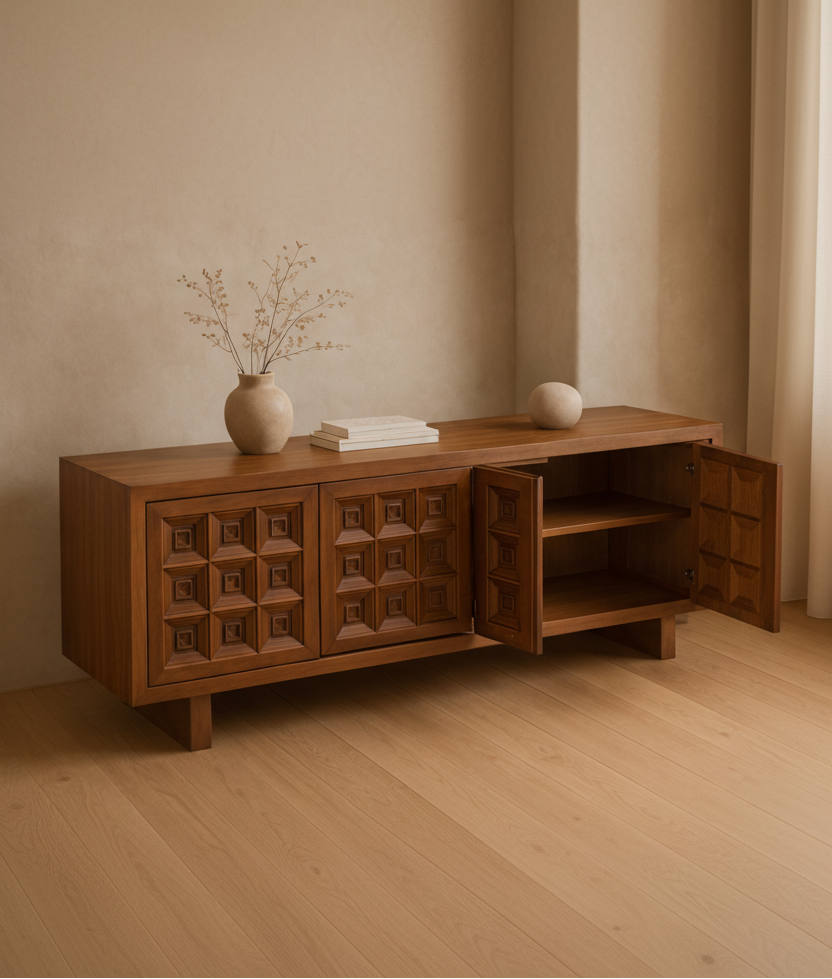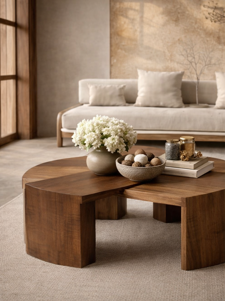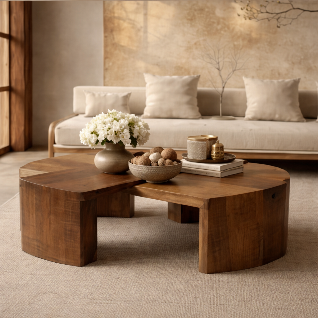 Fabricados piezas a medida con maderas naturales, respetando técnicas artesanales y conservando un diseño rústico moderno y elegante, ideales para salas, comedores y espacios relajados.